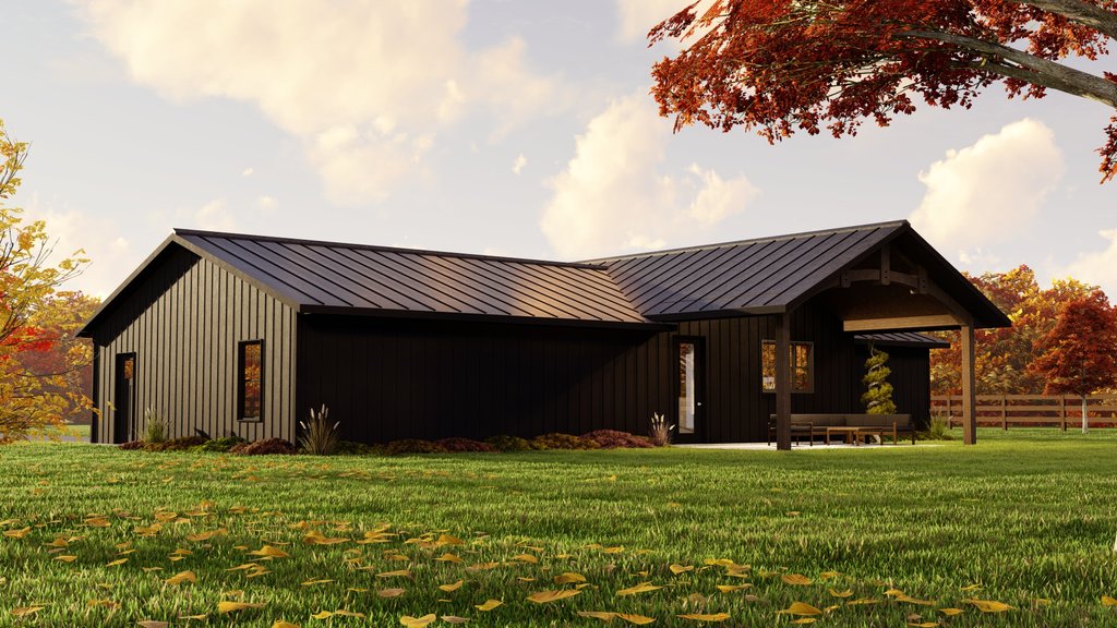 The 1737 sq ft barndominium design with two bedrooms and two bathrooms is a perfect blend of rustic charm and modern convenience. Its thoughtful layout, spacious living areas, and functional design create an inviting atmosphere that is ideal for both daily living and entertaining.